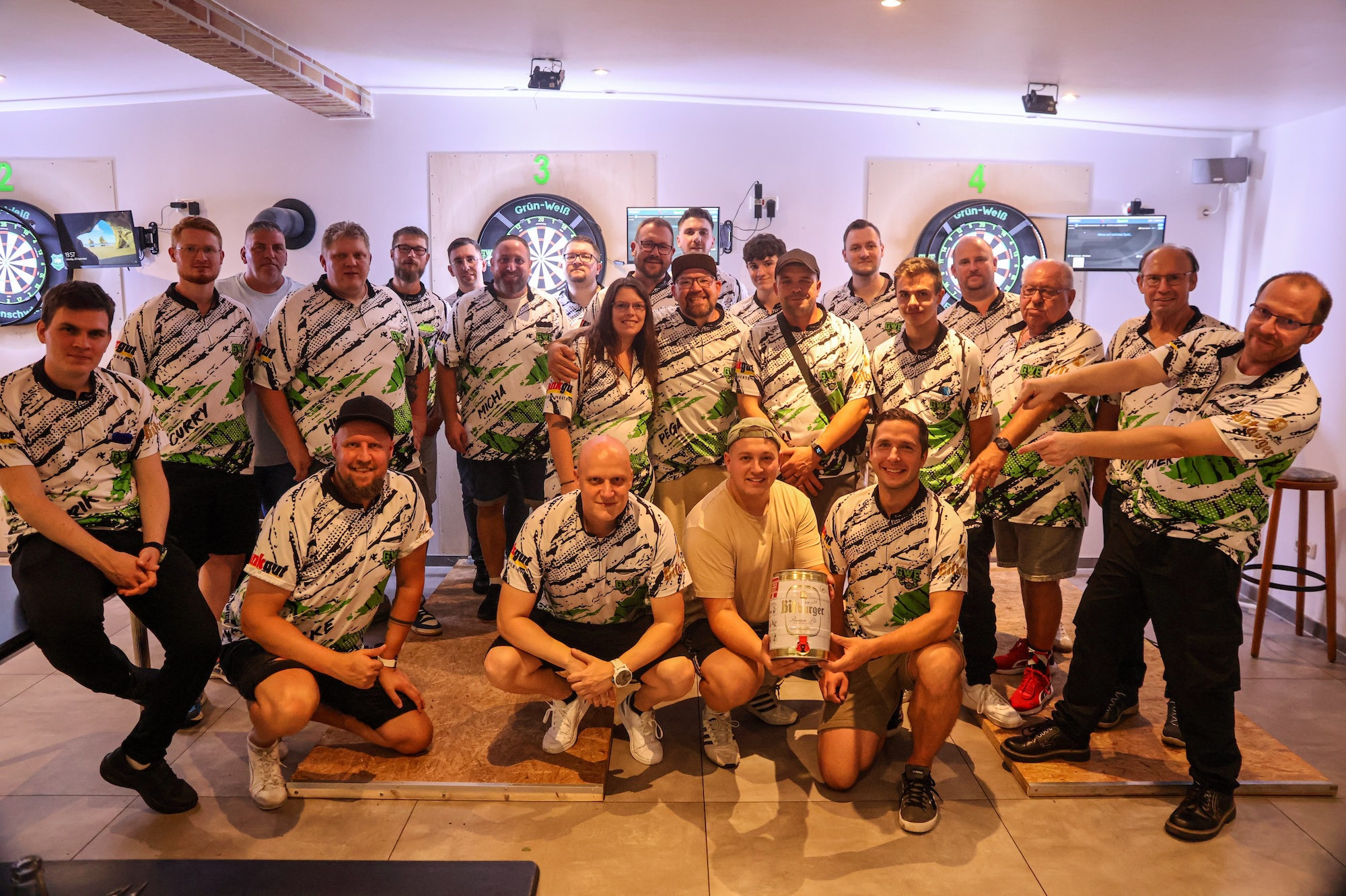 Unsere im Jahr 2021 gegründete Dartabteilung trifft sich ein mal wöchentlich im Vereinsheim. Dort hängen nicht nur vier Scheiben, sie sind beleuchtet, es gibt Bodenplatten um den Abstand einzuhalten und im Sommer 2023 haben unsere Darter für jede Scheibe einen Monitor angeschafft mit einem digitalem Zählerprogramm. Rund 15 Mitglieder treffen sich jeden Mittwoch und freuen sich immer über neue Mitglieder.