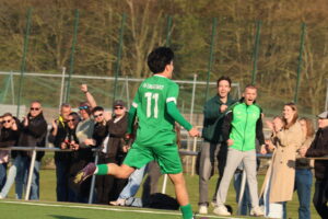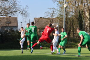 Ebenfalls nicht gut war die Situation nach rund einer viertel Stunde: Ein eigener Einwurf landete direkt vor Torhüter Jakob Lücke, der etwas zu lange zögerte. Gegenspieler Justin Pietsch hielt beim Versuch des Abspielens nur noch den Fuß dazwischen und brachte die Hausherren mit 1:0 in Führung.
