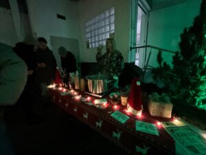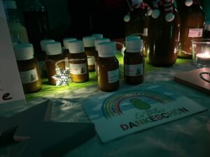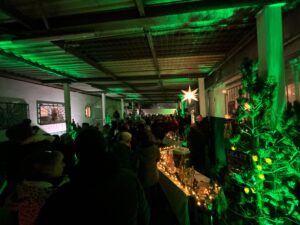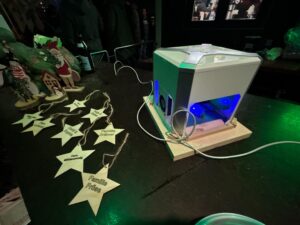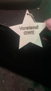 Wie in den letzten Jahren auch, wurden wieder Spenden für das Kinderpalliativzentrum in Datteln gesammelt. Die beliebten Spendensterne gab es für eine Mindestspende von 5€. Zahlreiche Sterne wurden unter die Graviermaschine gelegt und individuell gestaltet, um am Baum aufgegangen zu werden. Besonders gefreut hat uns der Besuch von Nicole Sasse vom Kinderpalliativzentrum, die unsere Veranstaltung jedes Jahr besuchen kommt.