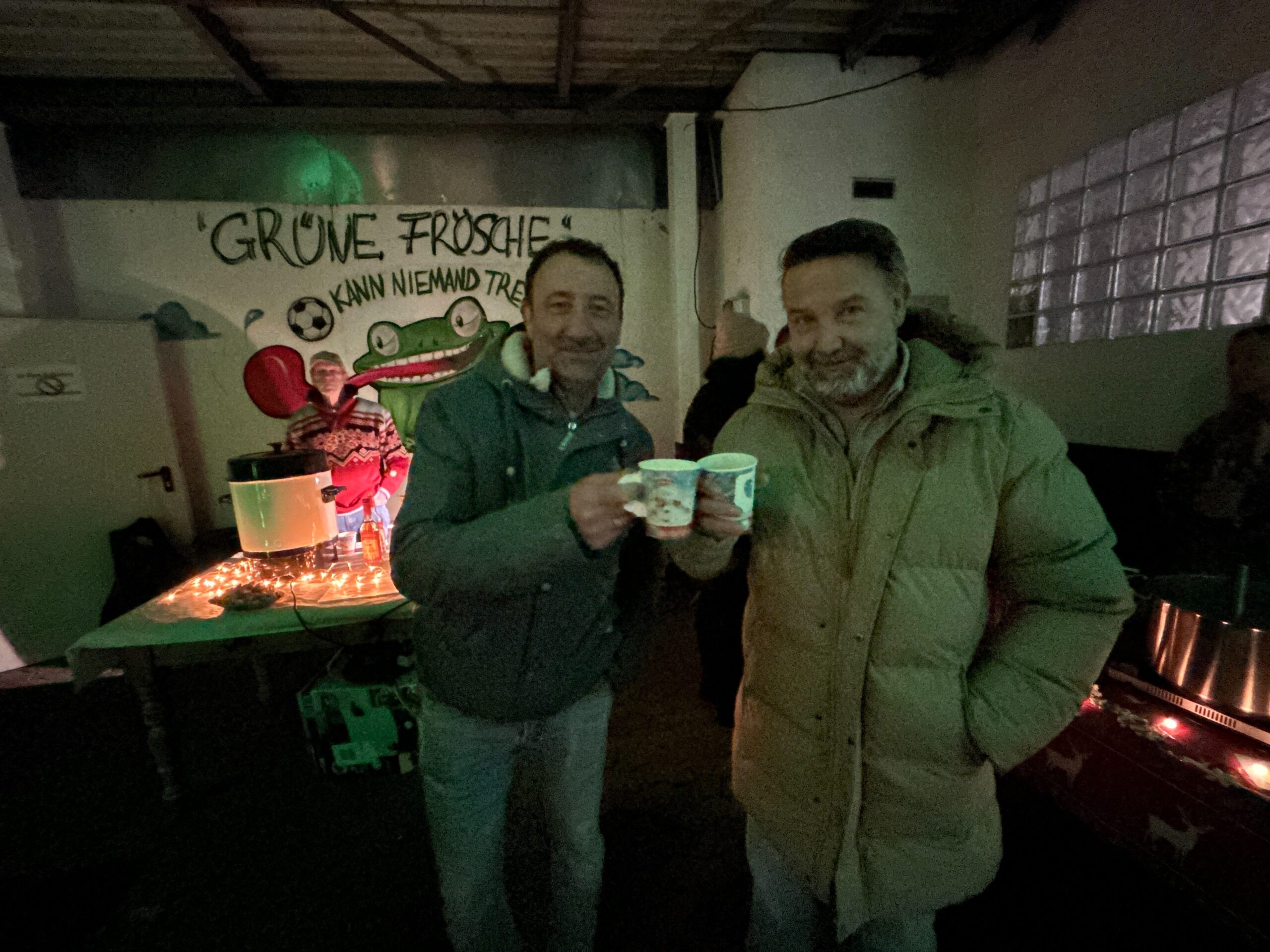 Ab dem frühen Nachmittag dekorierten sechs Jugendmannschaften und der Förderkreis ihre Stände unter dem Vordach vor den Kabinen. Von Waffeln, über Crêpes und Kakao bis hin zum klassischen Glühwein – es war für alle etwas dabei. Natürlich durften die selbst gemachten Weihnachtsschnäpse und der Glüh-Lillet nicht fehlen. Unsere Jugendmannschaften haben wieder einmal eine hervorragende Weihnachtliche Kulisse geschaffen!